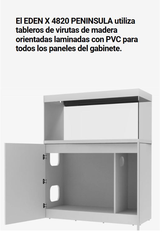 Acuario EDEN X 80 Peninsula Diseñado para adoptar los modernos sistemas de iluminación y filtración. Su diseño intuitivo le permite crear el entorno acuático ideal.