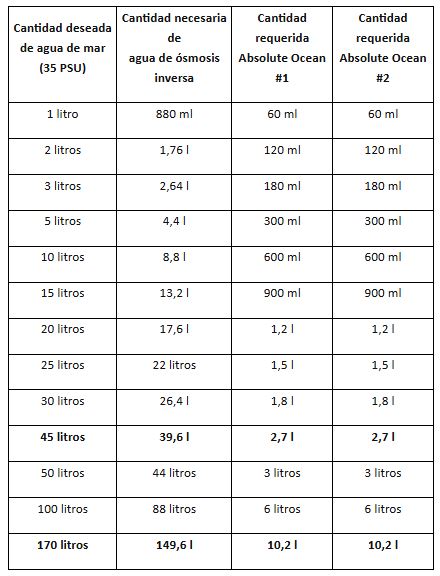 Juego de 2 x 2,7L Absolute Ocean: Para 45 litros de agua de mar