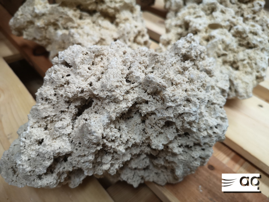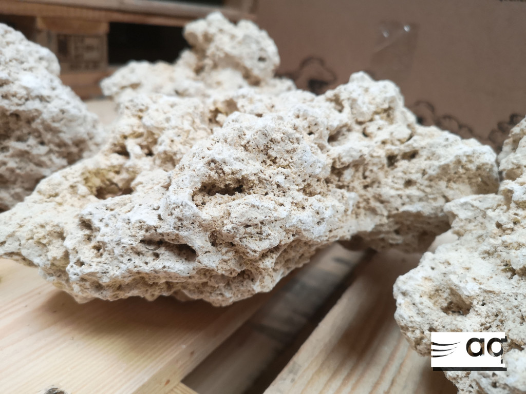 La roca es muy ligera, debido a su porosidad natural y es muy manejable y fácil de trabajar para construir dentro del acuario.